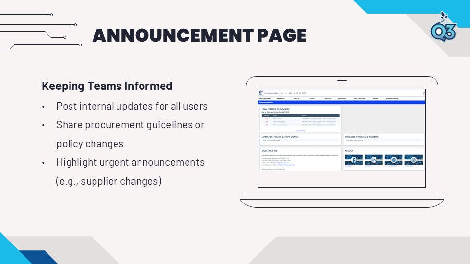 Streamline procurement, track stock in real time, and cut costs across outlets. With automation, vendor compliance, and seamless integration, Q3 Inventory boosts efficiency — so your team can focus on guests.